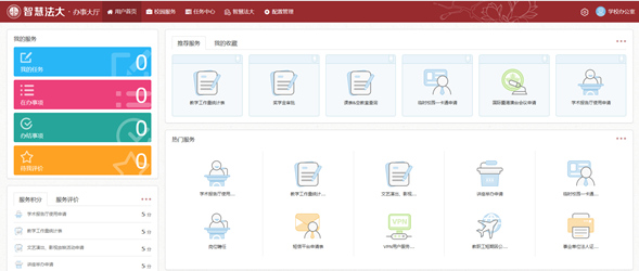 1.登陸智慧法大(v.cupl.edu.cn),進入辦事大廳。